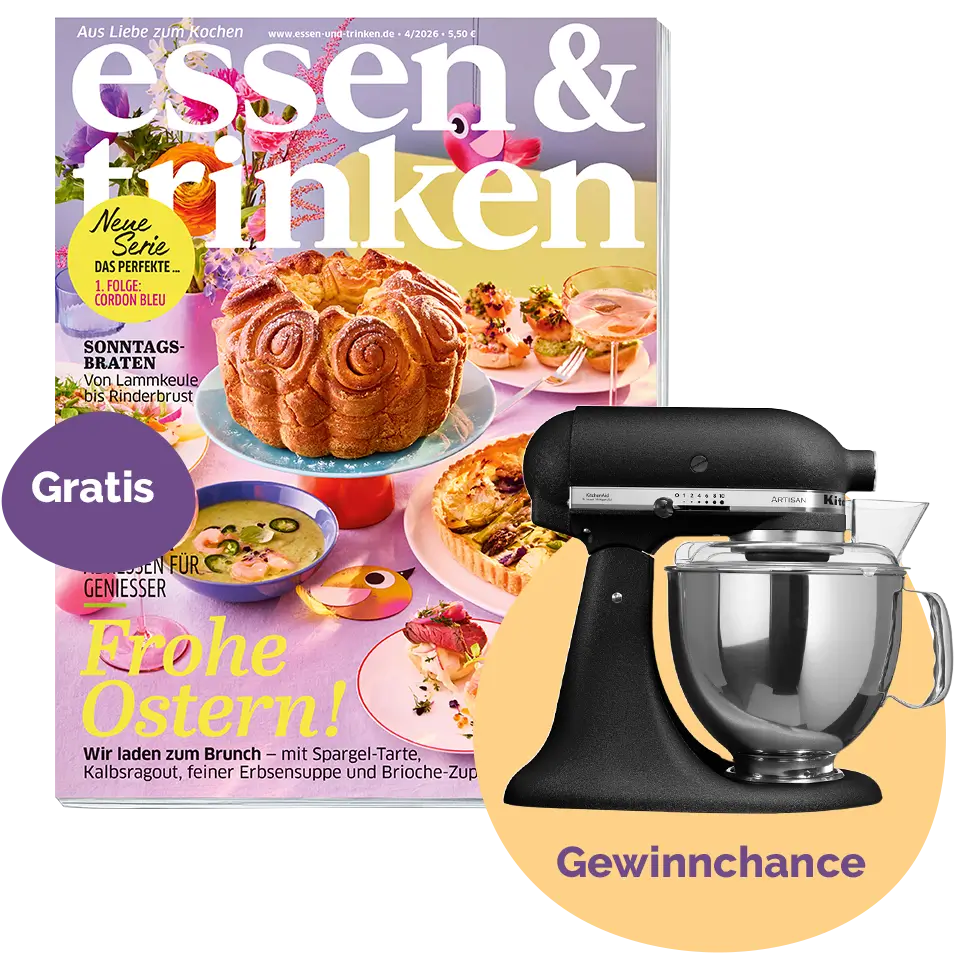Du willst noch mehr »essen & trinken«? Hol dir direkt 12 Ausgaben zu dir nach Hause. Als Dankeschön bekommst du einen Reisenthel Carrybag im Wert von 49,95 € von uns. Mit etwas Glück gewinnst du eine KitchenAid Küchenmaschine.